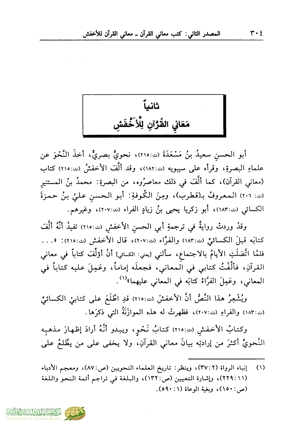 ثانياً مَعَانِي القُرْآنِ لِلاخْفَشِ