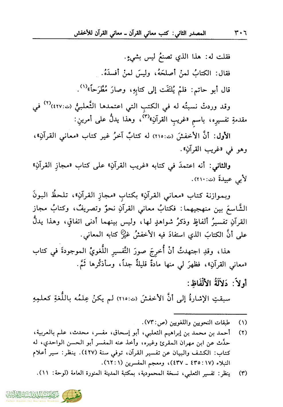 الأول: أنَّ الأخفشَ (ت:215) له كتابٌ آخرُ غير كتاب «معاني القرآنِ»، وهو في «غريب القرآنِ».