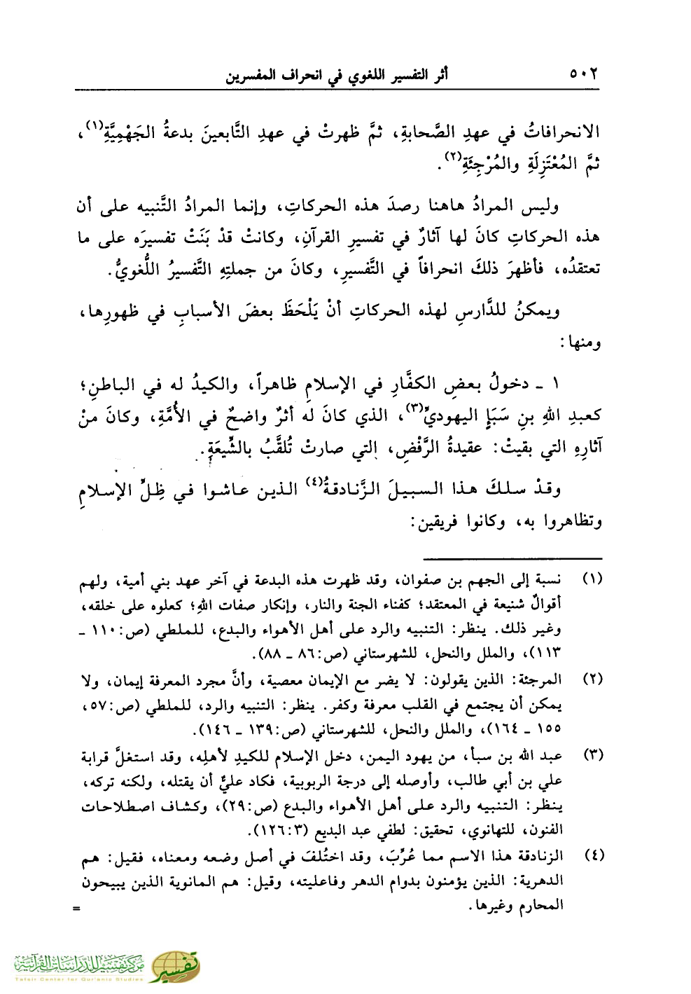 وليس المرادُ هاهنا رصدَ هذه الحركاتِ، وإنما المرادُ التَّنبيه على أن هذه الحركاتِ كانَ لها آثارٌ في تفسيرِ القرآنِ، وكانتْ قدْ بَنَتْ تفسيرَه على ما تعتقدُه، فأظهرَ ذلكَ انحرافاً في التَّفسيرِ، وكانَ من جملتِهِ التَّفسيرُ اللُّغويُّ.