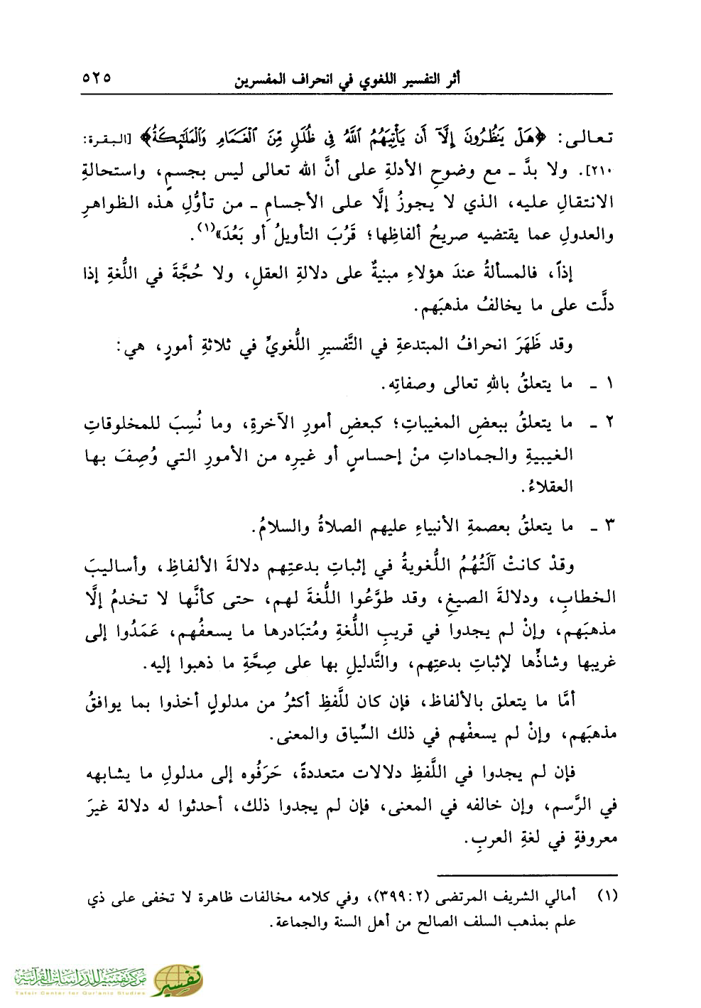 (¬1) أمالي الشريف المرتضى (2:399)، وفي كلامه مخالفات ظاهرة لا تخفى على ذي علم بمذهب السلف الصالح من أهل السنة والجماعة.