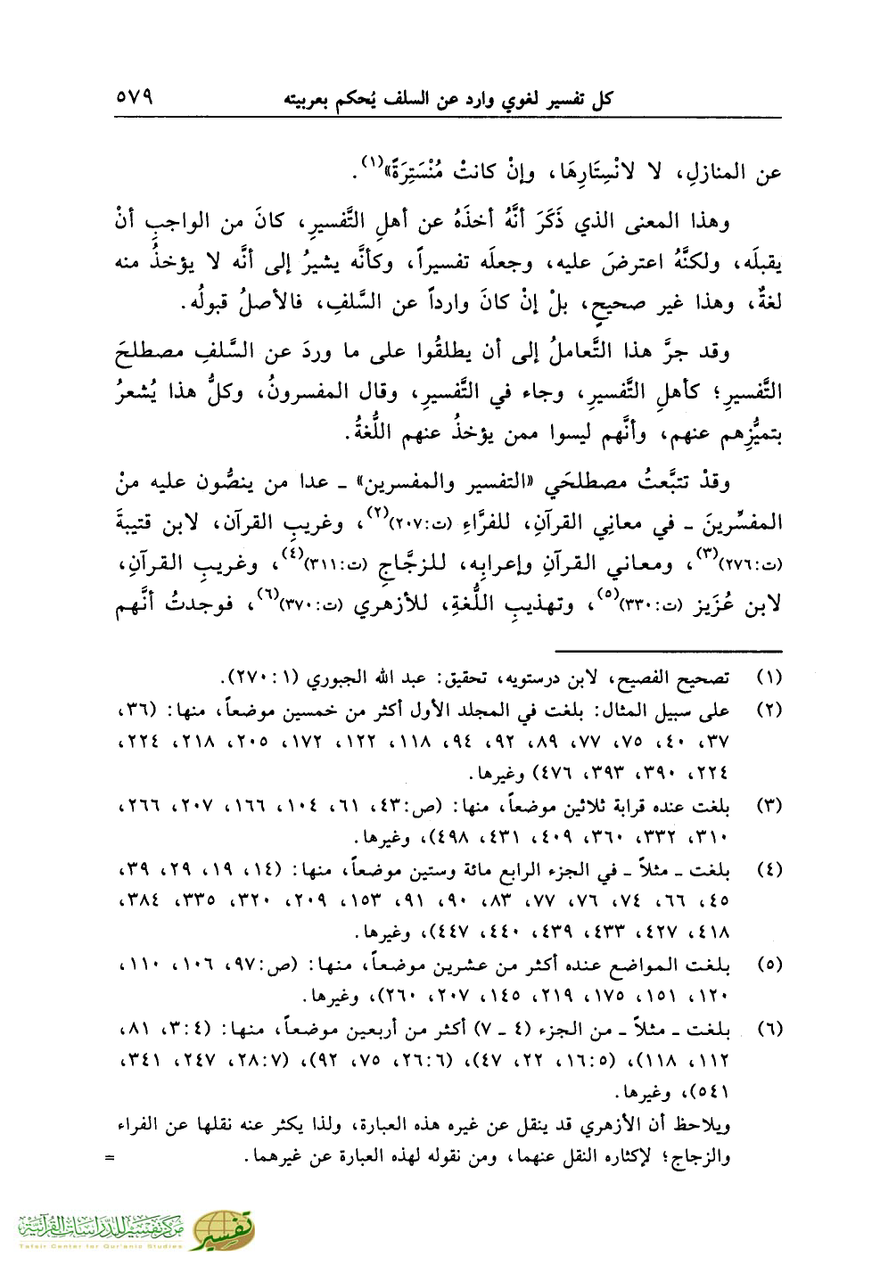 وقدْ تتبَّعتُ مصطلحَي «التفسير والمفسرين» ـ عدا من ينصُّون عليه منْ المفسِّرينَ ـ في معانِي القرآنِ، للفرَّاءِ (ت:207) (¬2)، وغريبِ القرآن، لابن قتيبةَ (ت:276) (¬3)، ومعاني القرآنِ وإعرابِه، للزجَّاجِ (ت:311) (¬4)، وغريبِ القرآنِ، لابن عُزَيز (ت:330) (¬5)، وتهذيبِ اللُّغةِ، للأزهري (ت:370) (¬6)، فوجدتُ أنَّهم