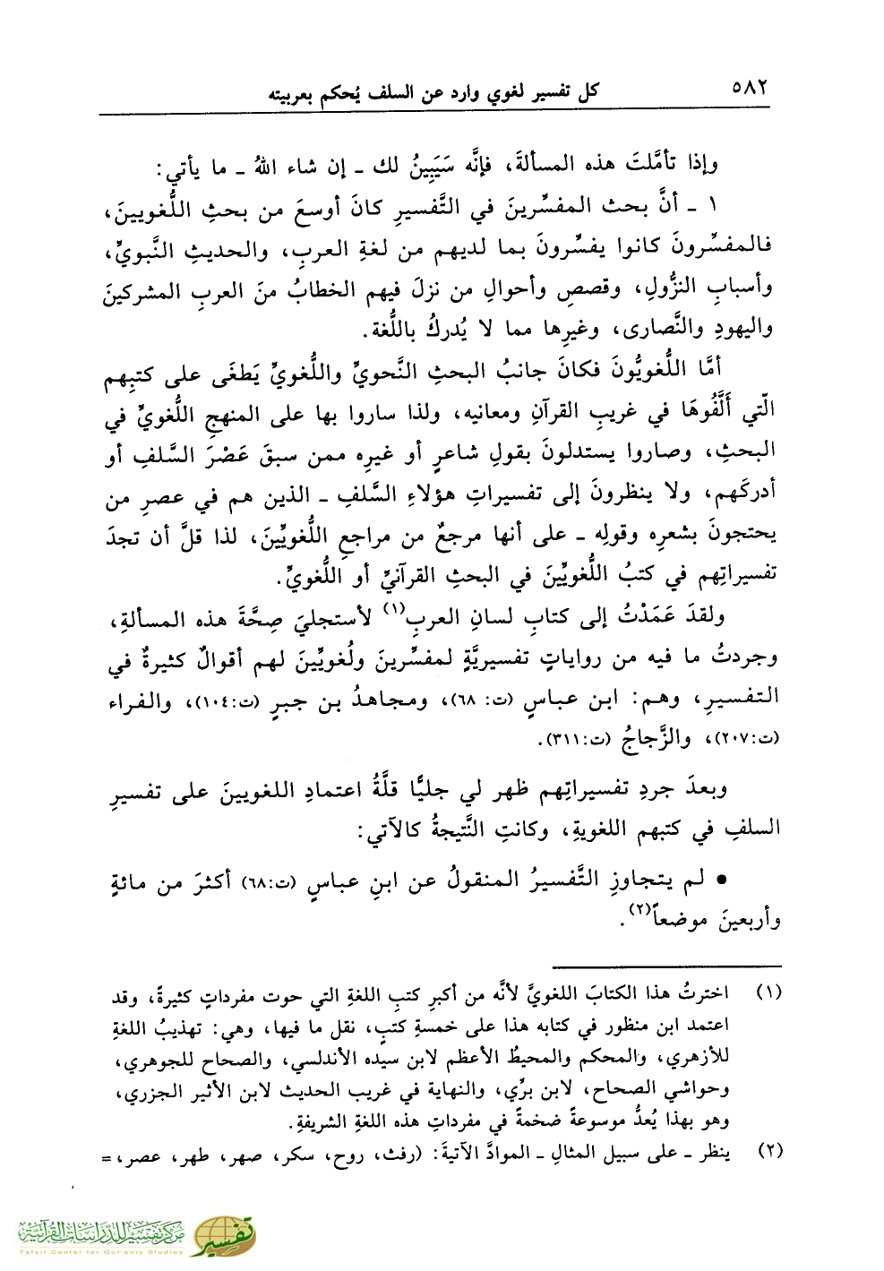 ولقدَ عَمَدْتُ إلى كتابِ لسانِ العربِ (¬1) لأستجليَ صِحَّةَ هذه المسألةِ، وجردتُ ما فيه من رواياتٍ تفسيريَّةٍ لمفسِّرينَ ولُغويِّينَ لهم أقوالٌ كثيرةٌ في التفسيرِ، وهم: ابن عباسٍ (ت: 68)، ومجاهدُ بن جبرٍ (ت:104)، والفراء (ت:207)، والزَّجاجُ (ت:311).