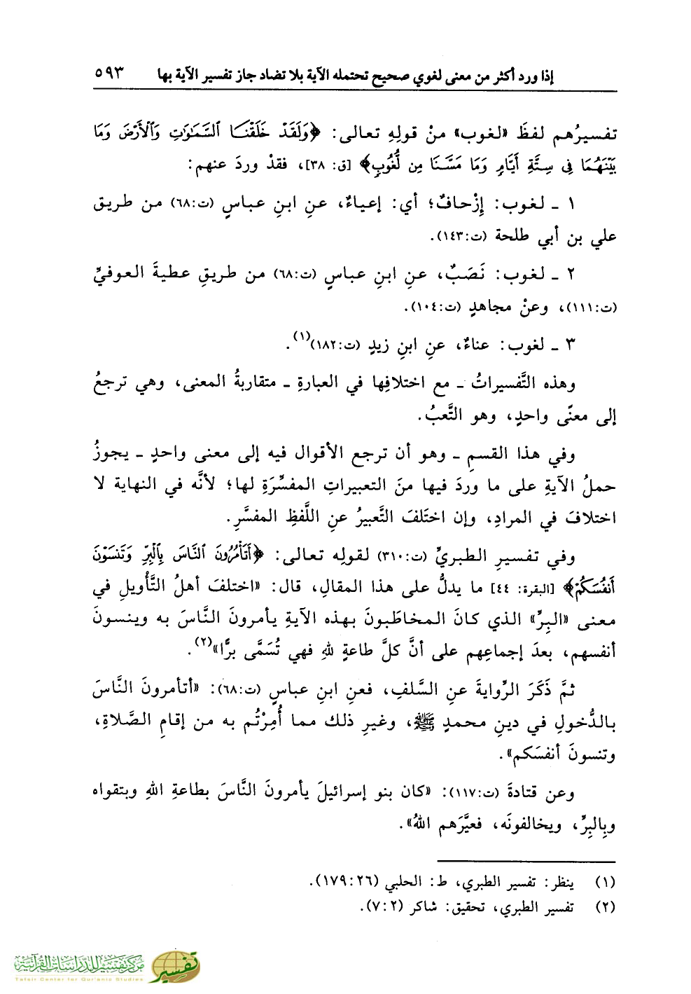 (¬1) ينظر: تفسير الطبري، ط: الحلبي (26:179).