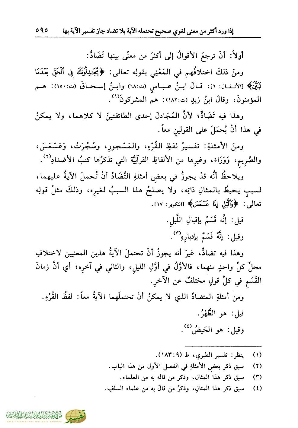 ومن أمثلةِ المتضادِّ الذي لا يمكنُ أنْ تحتملَهما الآيةُ معاً: لفظُ القُرْءِ.