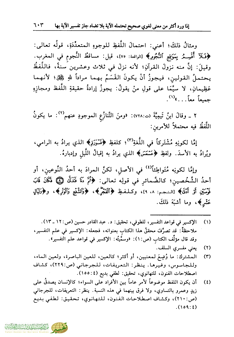 (¬1) الإكسير في قواعد التفسير، للطوفي، تحقيق: د. عبد القادر حسين (ص:12 - 13).