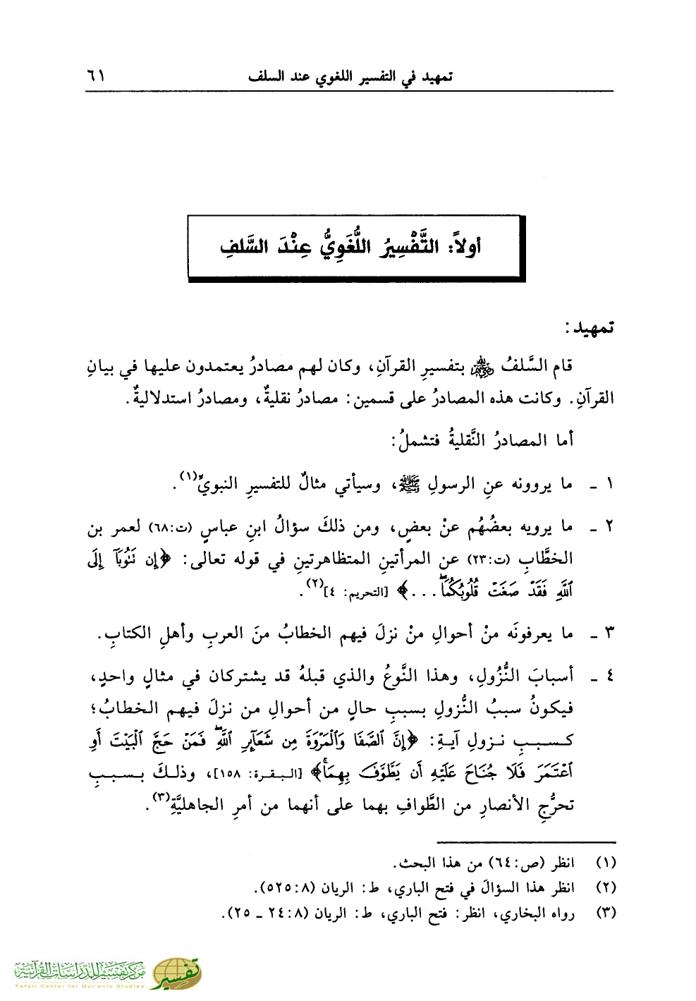 أولاً: التَّفْسِيرُ اللُّغَوِيُّ عِنْدَ السَّلفِ