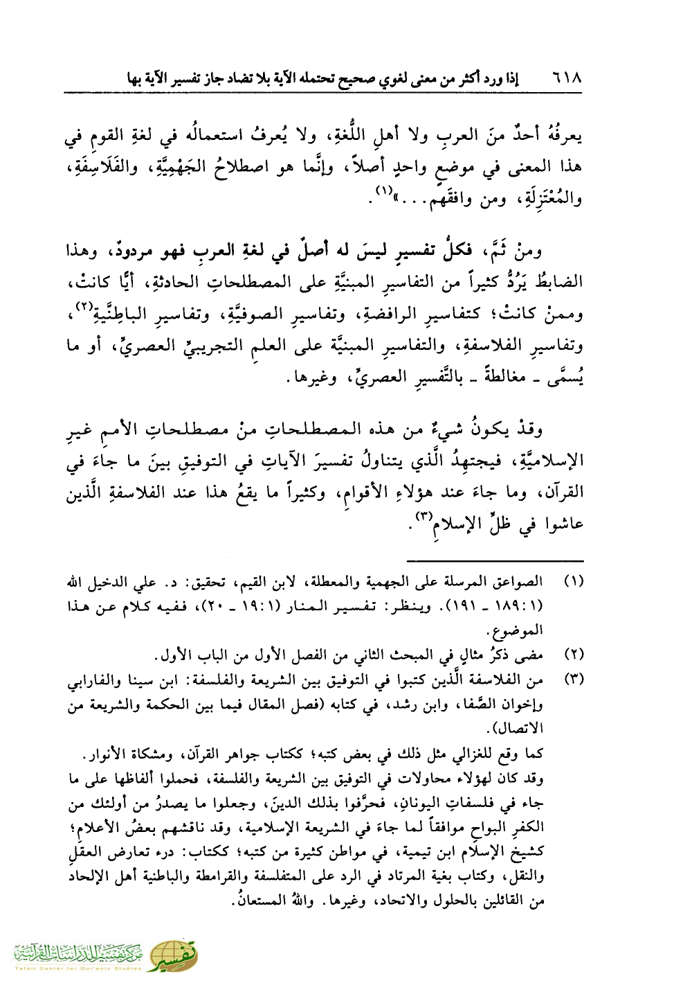 (¬1) الصواعق المرسلة على الجهمية والمعطلة، لابن القيم، تحقيق: د. علي الدخيل الله (1:189 - 191). وينظر: تفسير المنار (1:19 - 20)، ففيه كلام عن هذا الموضوع.