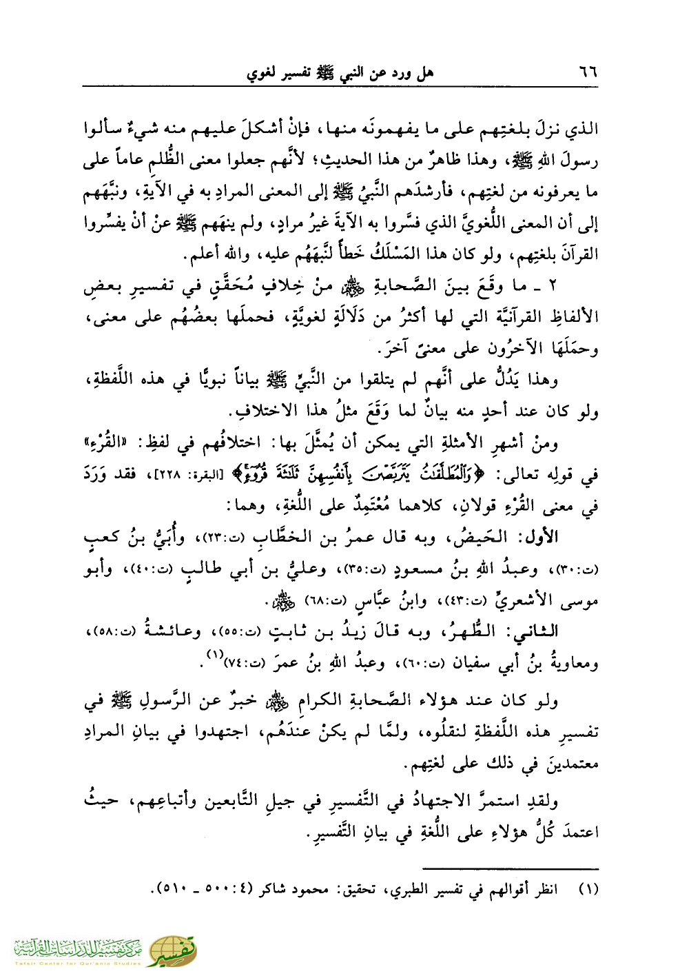 (¬1) انظر أقوالهم في تفسير الطبري، تحقيق: محمود شاكر (4:500 - 510).