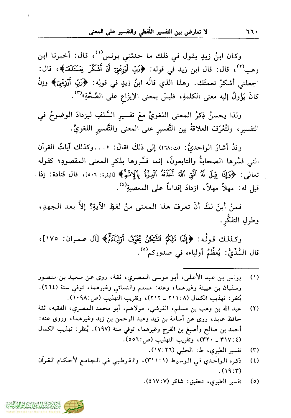 ولذا يحسنُ ذِكرُ المعنى اللغويِّ معَ تفسيرِ السَّلفِ ليزدادَ الوضوحُ في التفسيرِ، ولتُعْرَفَ العلاقةُ بين التَّفسيرِ على المعنى والتَّفسيرِ اللغويِّ.