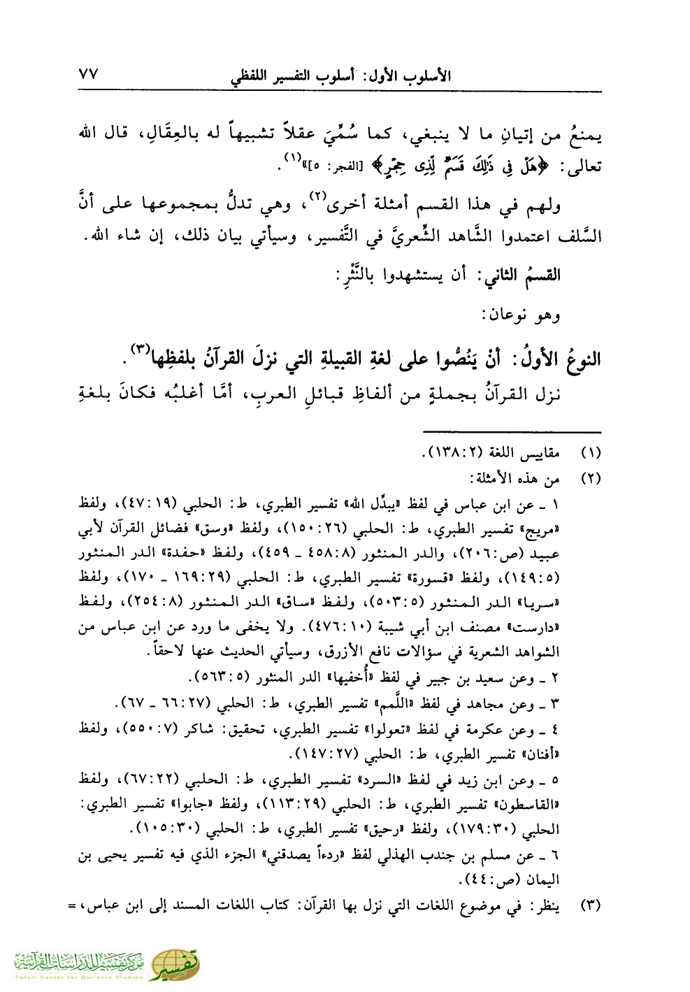 ولهم في هذا القسم أمثلة أخرى (¬2)، وهي تدلُّ بمجموعها على أنَّ السَّلف اعتمدوا الشَّاهد الشِّعريَّ في التَّفسير، وسيأتي بيان ذلك، إن شاء الله.