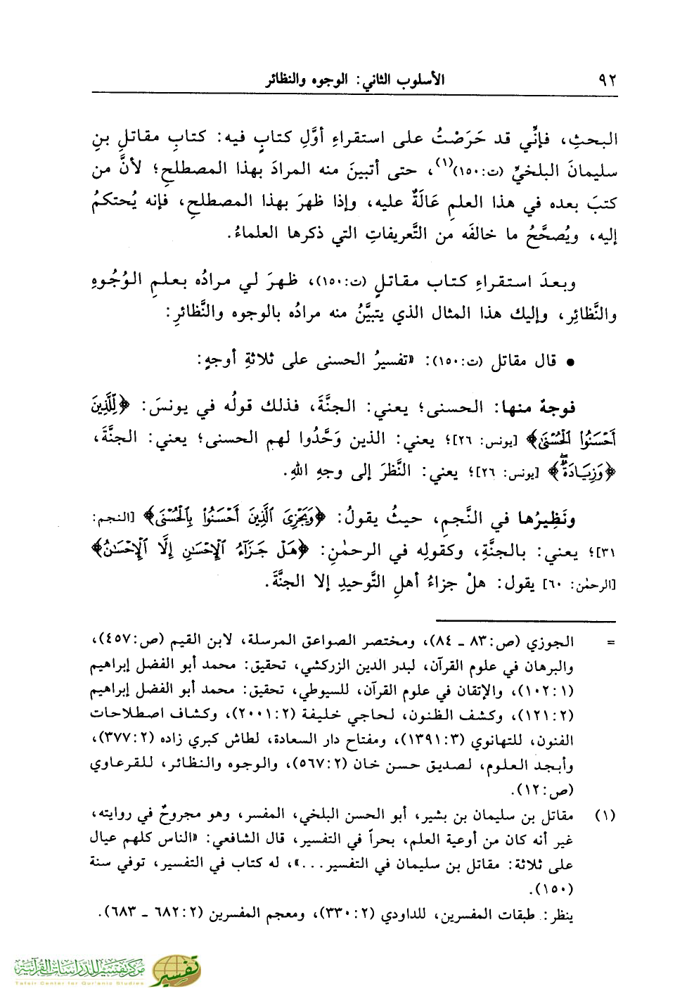 وبعدَ استقراءِ كتاب مقاتلٍ (ت:150)، ظهرَ لي مرادُه بعلمِ الوُجُوهِ والنَّظائِر، وإليك هذا المثال الذي يتبيَّنُ منه مرادُه بالوجوه والنَّظائرِ: