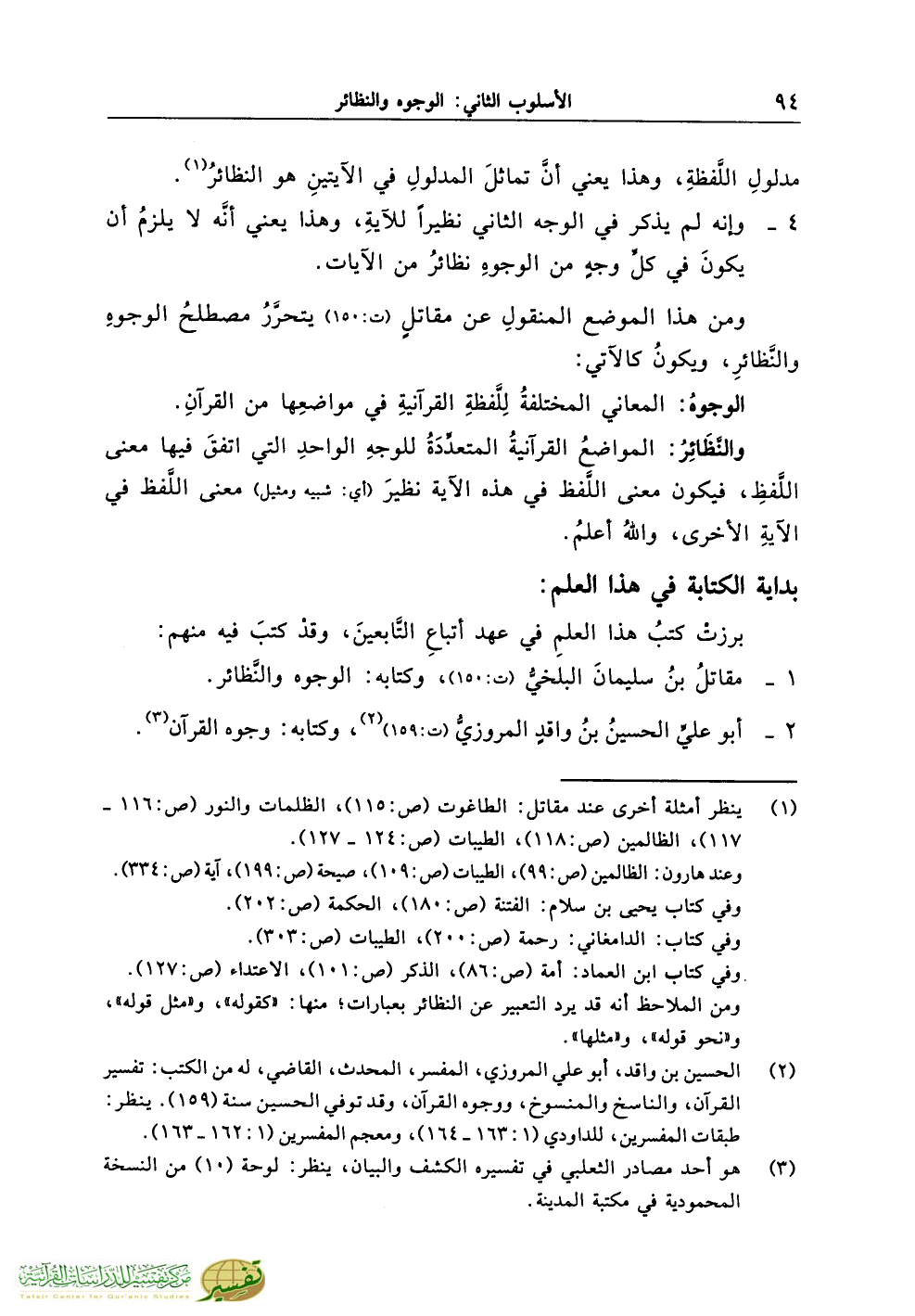 1 - مقاتلُ بنُ سليمانَ البلخيُّ (ت:150)، وكتابه: الوجوه والنَّظائر.