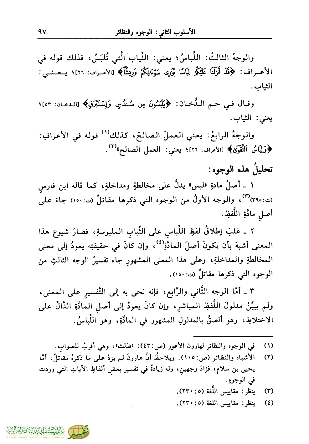 (¬2) الأشباه والنظائر (ص:105). ويلاحظُ أنَّ هارونَ لم يزدْ على ما ذكرهُ مقاتلٌ، أمَّا يحيى بن سلام، فزادَ وجهينِ، وله زيادةٌ في تفسير بعضِ ألفاظِ الآياتِ التي وردت في الوجوهِ.