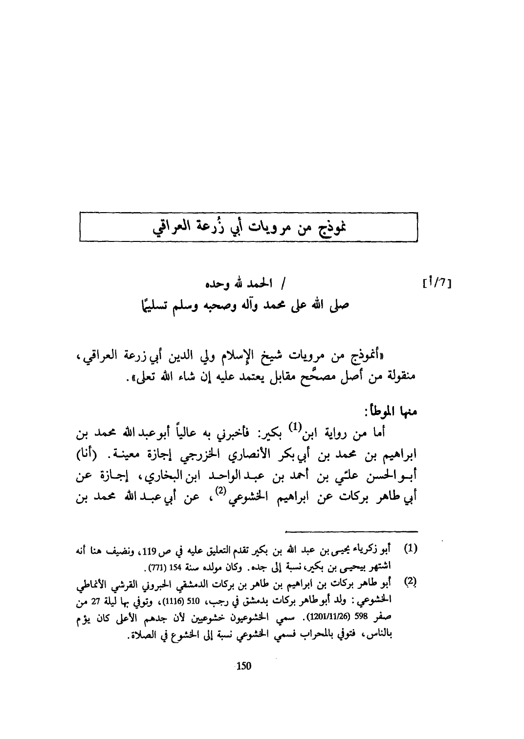 أنموذج من مرويات شيخ الْإِسْلَام ولي الدّين أبي زرْعَة الْعِرَاقِيّ منقولة من أصل مصحح مُقَابل يعْتَمد عَلَيْهِ إِن شَاءَ الله تعلى
