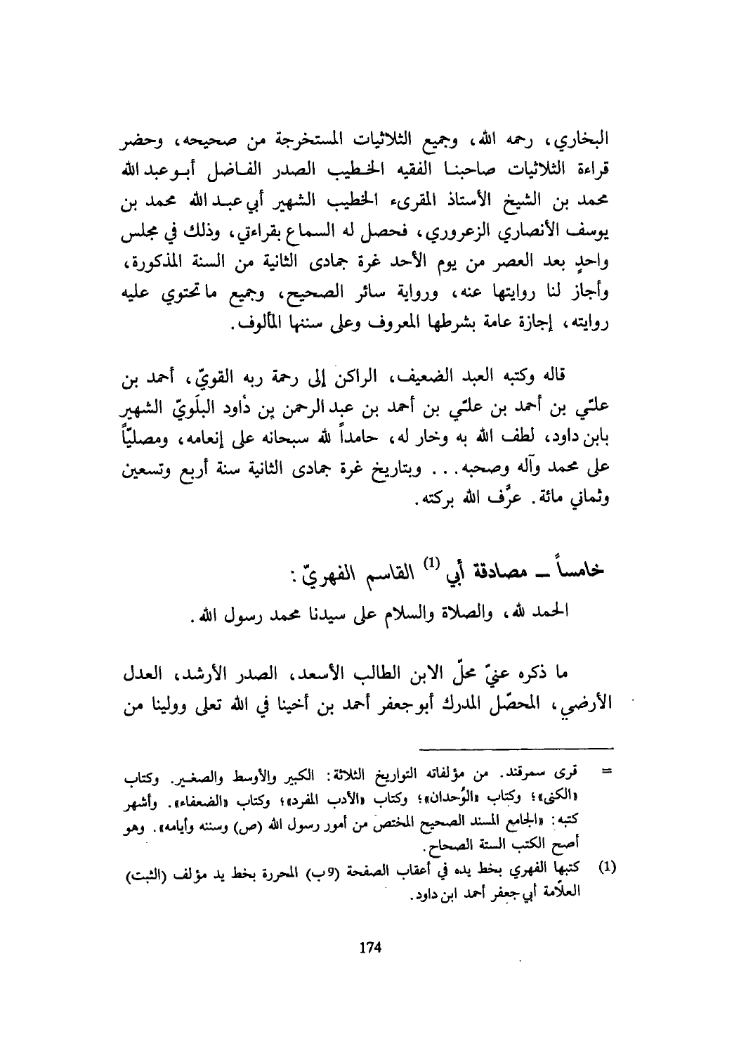 خَامِسًا مصادقة أبي الْقَاسِم الفِهري