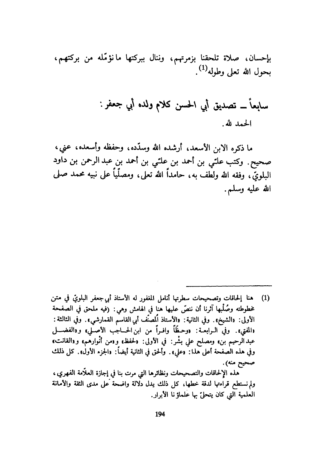 مَا ذكره الابْن الأسعد أرشده الله وسدده وَحفظه وأسعده عني صَحِيح وَكتب عَليّ بن أَحْمد بن عَليّ بن أَحْمد بن عبد الرَّحْمَن بن دَاوُد البلوي وَفقه الله ولطف بِهِ حامدا الله تعلى ومصليا على نبيه مُحَمَّد صلى الله عَلَيْهِ وَسلم