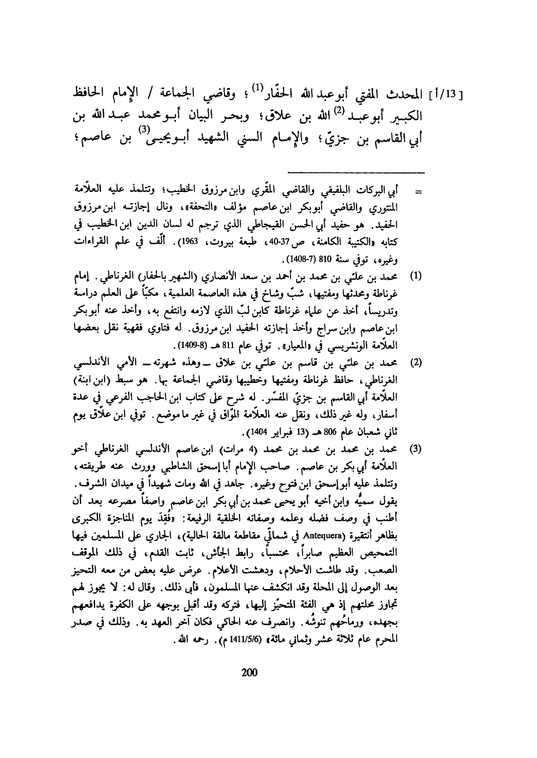 الْمُحدث الْمُفْتِي أَبُو عبد الله الحفار وقاضي الْجَمَاعَة الإِمَام الْحَافِظ الْكَبِير أَبُو عبد الله بن علاق وبحر الْبَيَان أَبُو مُحَمَّد عبد الله بن أبي الْقَاسِم بن جزي وَالْإِمَام السّني الشَّهِيد أَبُو يحيى بن عَاصِم