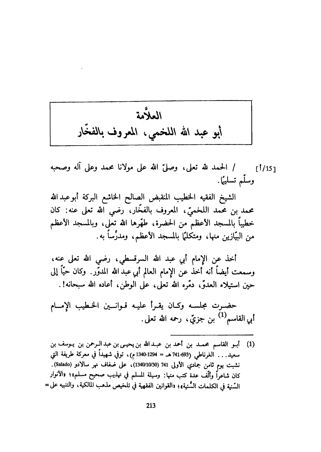 الْعَلامَة أَبُو عبد الله اللَّخْمِيّ الْمَعْرُوف بالفخار
