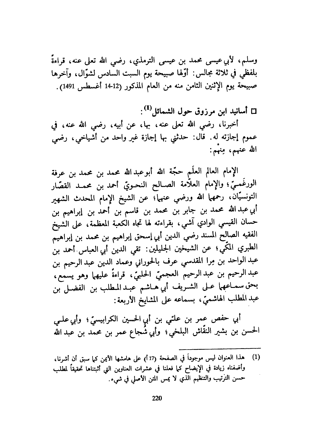 أَسَانِيد ابْن مَرْزُوق حول الشَّمَائِل