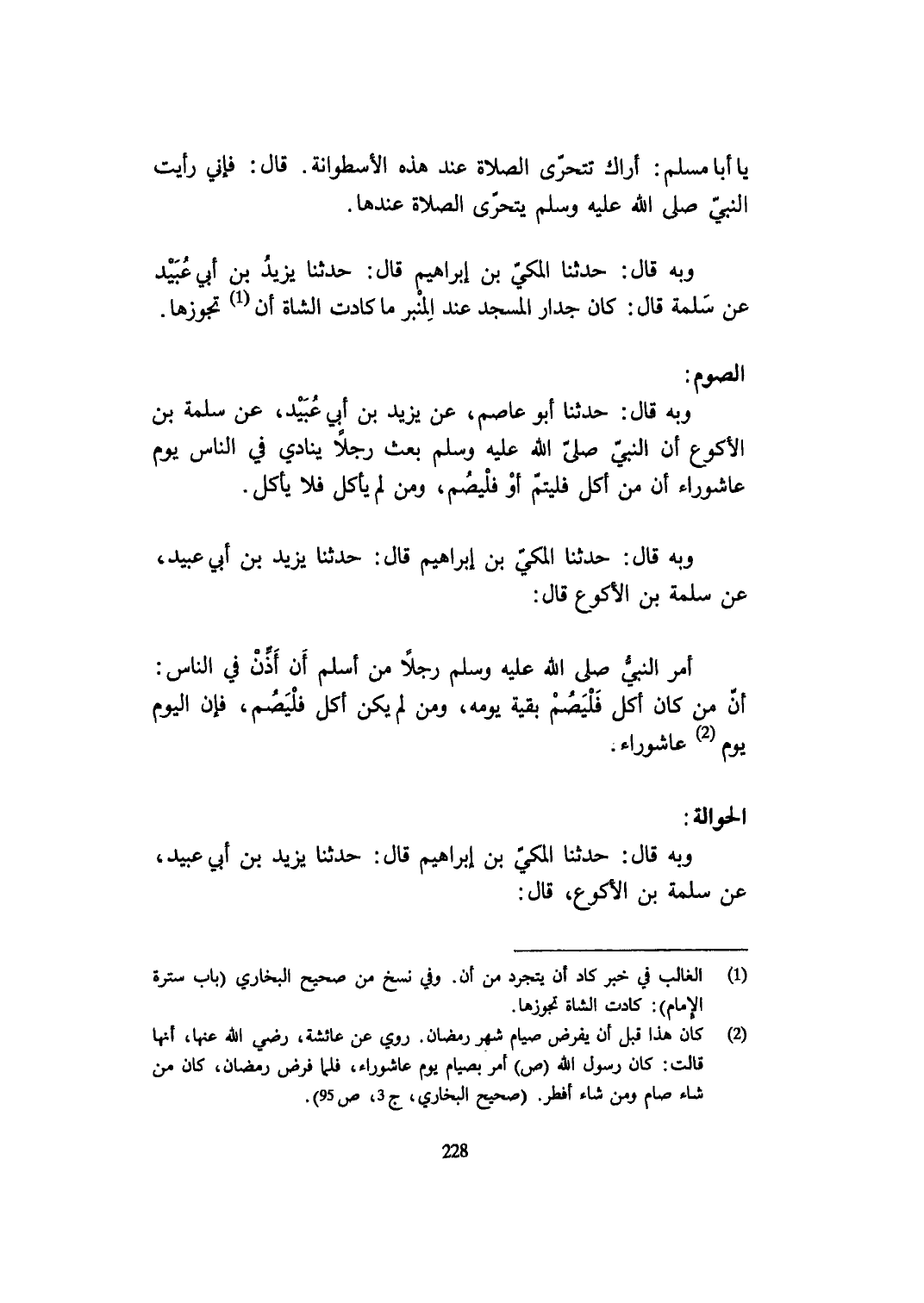 وَبِه قَالَ حَدثنَا بو عَاصِم عَن يزِيد بن أبي عبيد عَن سَلمَة بن الْأَكْوَع أَن النَّبِي صلى الله عَلَيْهِ وَسلم بعث رجلا يُنَادي فِي النَّاس يَوْم عَاشُورَاء أَن من أكل فليتم أَو فليصم وَمن لم يَأْكُل فَلَا يَأْكُل