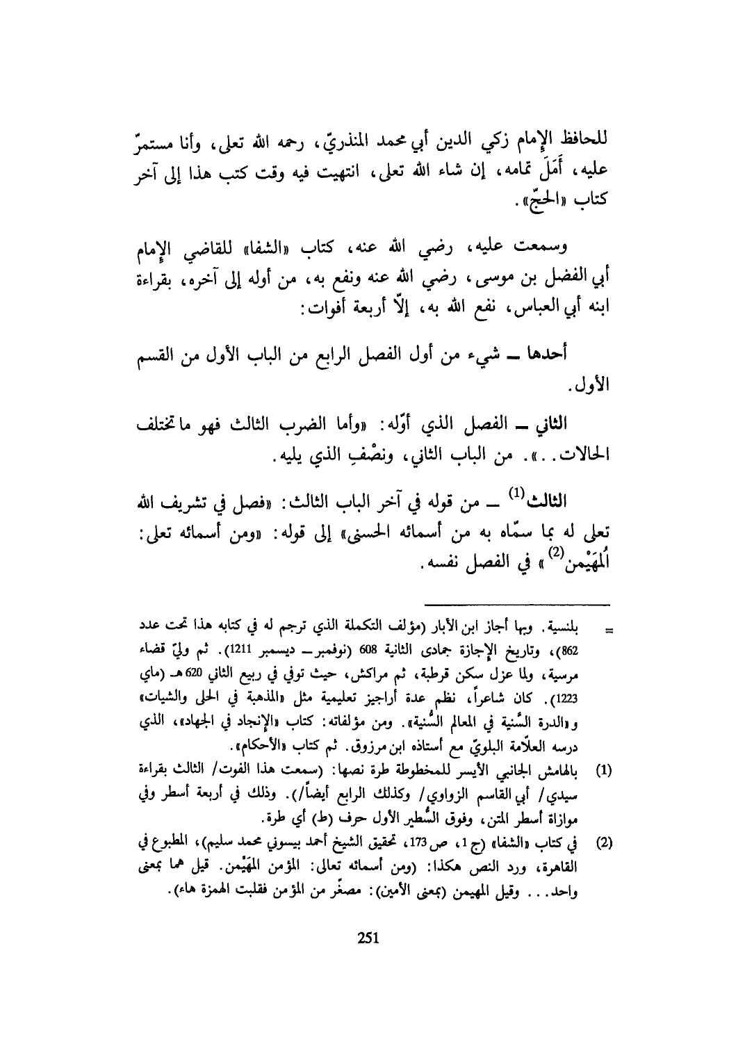 وَسمعت عَلَيْهِ رَضِي الله عَنهُ كتاب الشفا للْقَاضِي الإِمَام أبي الْفضل بن مُوسَى رَضِي الله عَنهُ ونفع بِهِ من أَوله إِلَى آخِره بِقِرَاءَة ابْنه أبي الْعَبَّاس نفع الله بِهِ إِلَّا أَرْبَعَة أفوات