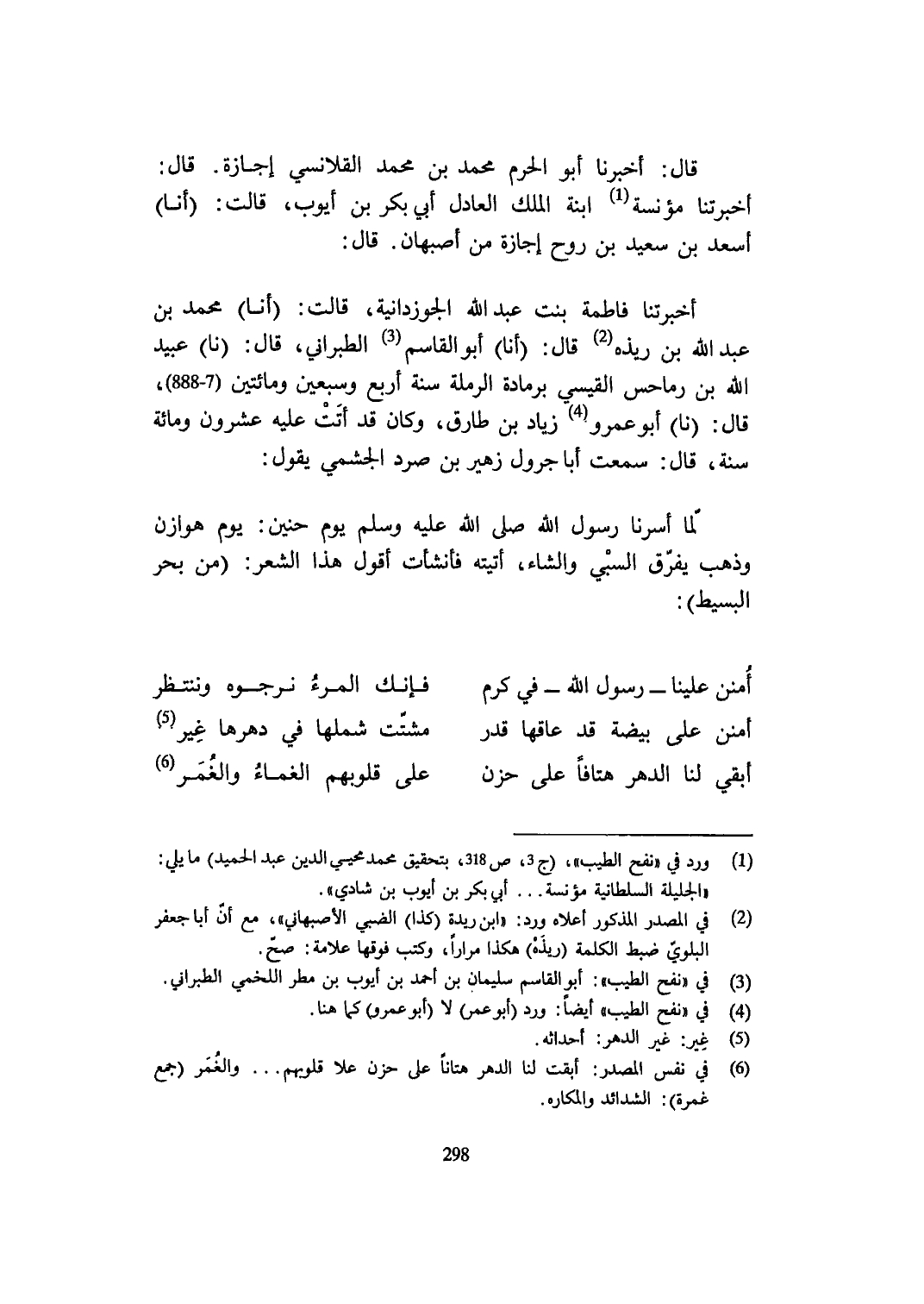 لما أسرنا رَسُول الله صلى الله عَلَيْهِ وَسلم يَوْم حنين يَوْم هوَازن وَذهب يفرق السَّبي وَالشَّاء أَتَيْته فأنشأت أَقُول هَذَا الشّعْر من بَحر الْبَسِيط
