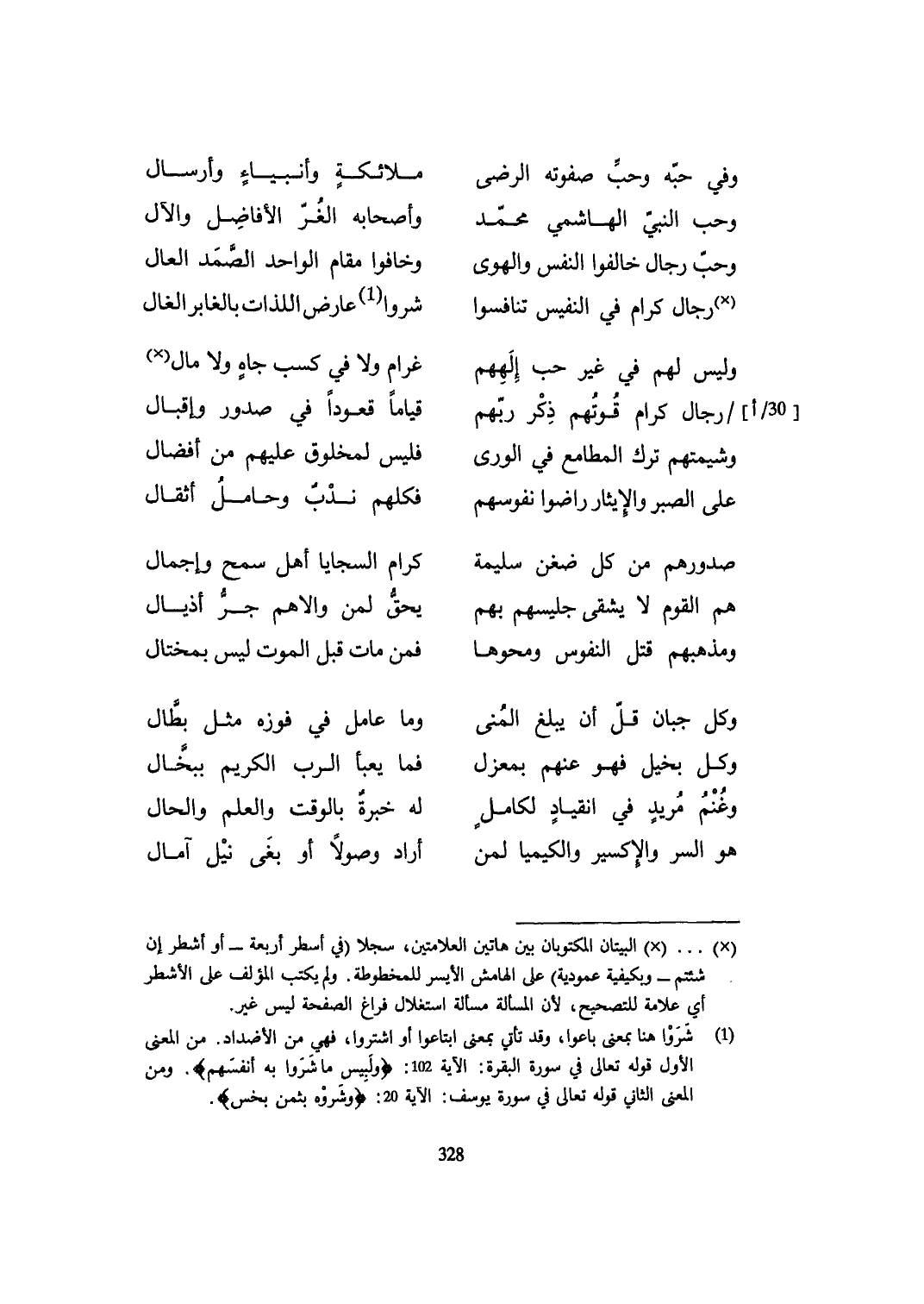 (وَحب النَّبِي الْهَاشِمِي مُحَمَّد ... وَأَصْحَابه الغر الأفاضل والآل)