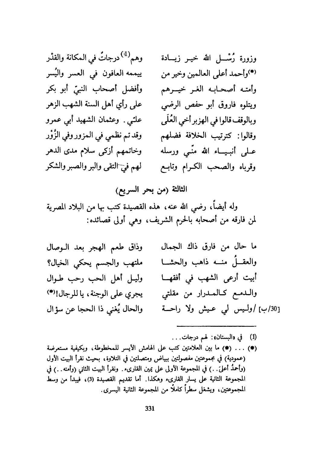 وَله أَيْضا رَضِي الله عَنهُ هَذِه القصيدة كتب بهَا من الْبِلَاد المصرية لمن فَارقه من أَصْحَابه بِالْحرم الشريف وَهِي أولى قصائده
