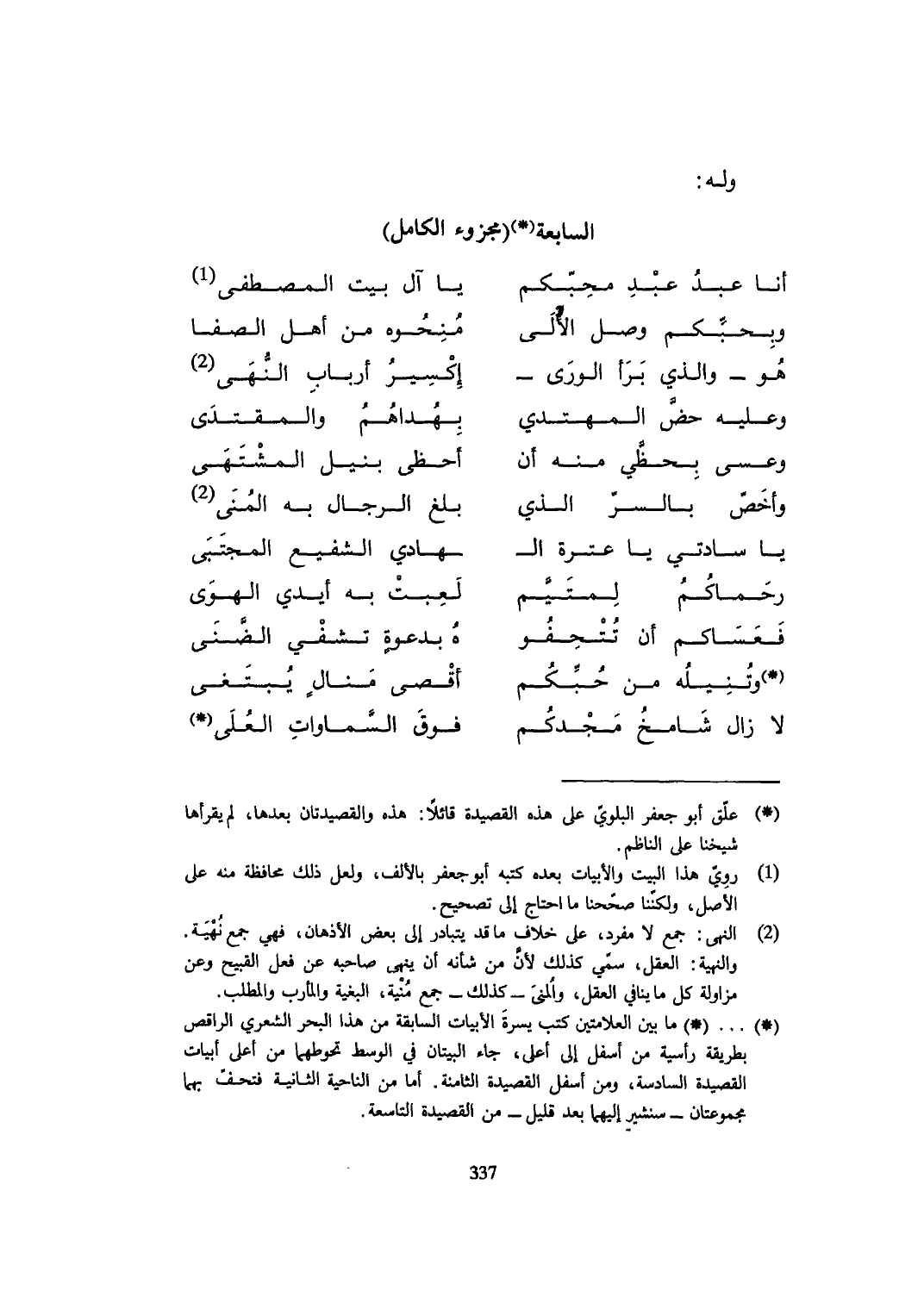 (وبحبكم وصل الألى ... منحوه من أهل الصَّفَا)