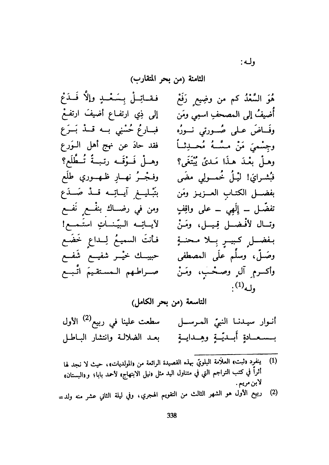 (أنوار سيدنَا النَّبِي الْمُرْسل ... سطعت علينا فِي ربيع الأول)
