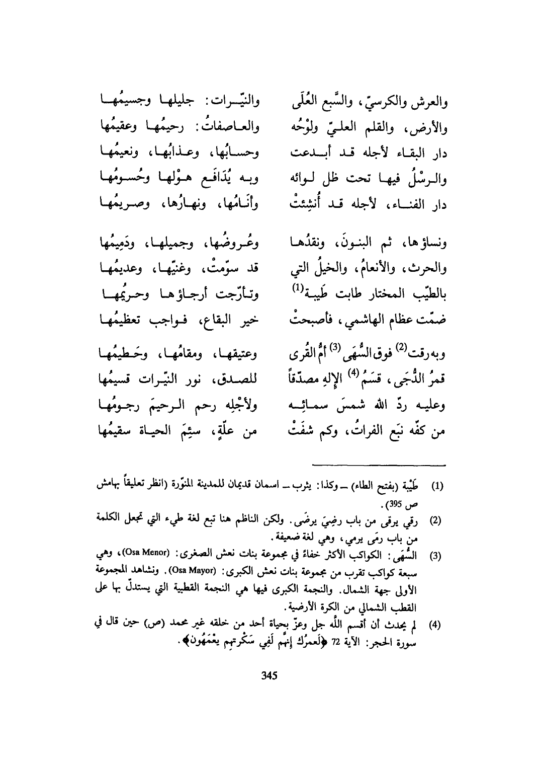 (بالطيب الْمُخْتَار طابت طيبَة ... وتأرجت أرجاؤها وحريمها)