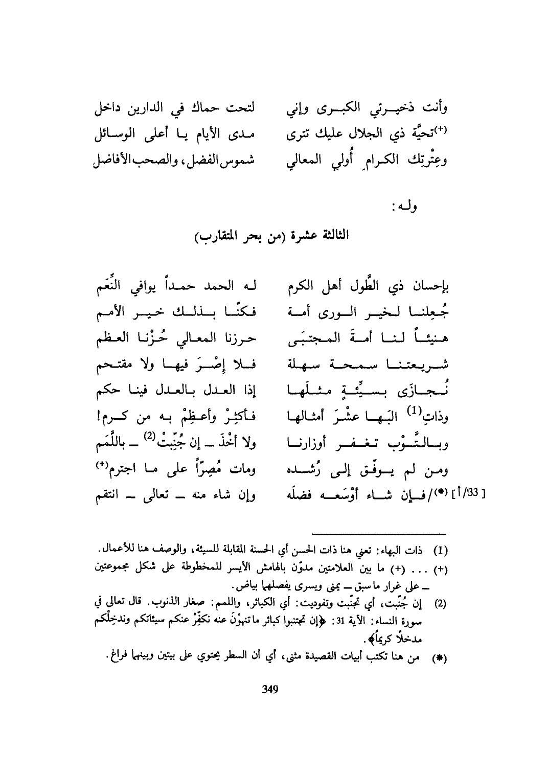 (بِإِحْسَان ذِي الطول أهل الْكَرم ... لَهُ الْحَمد حمدا يوافي النعم)