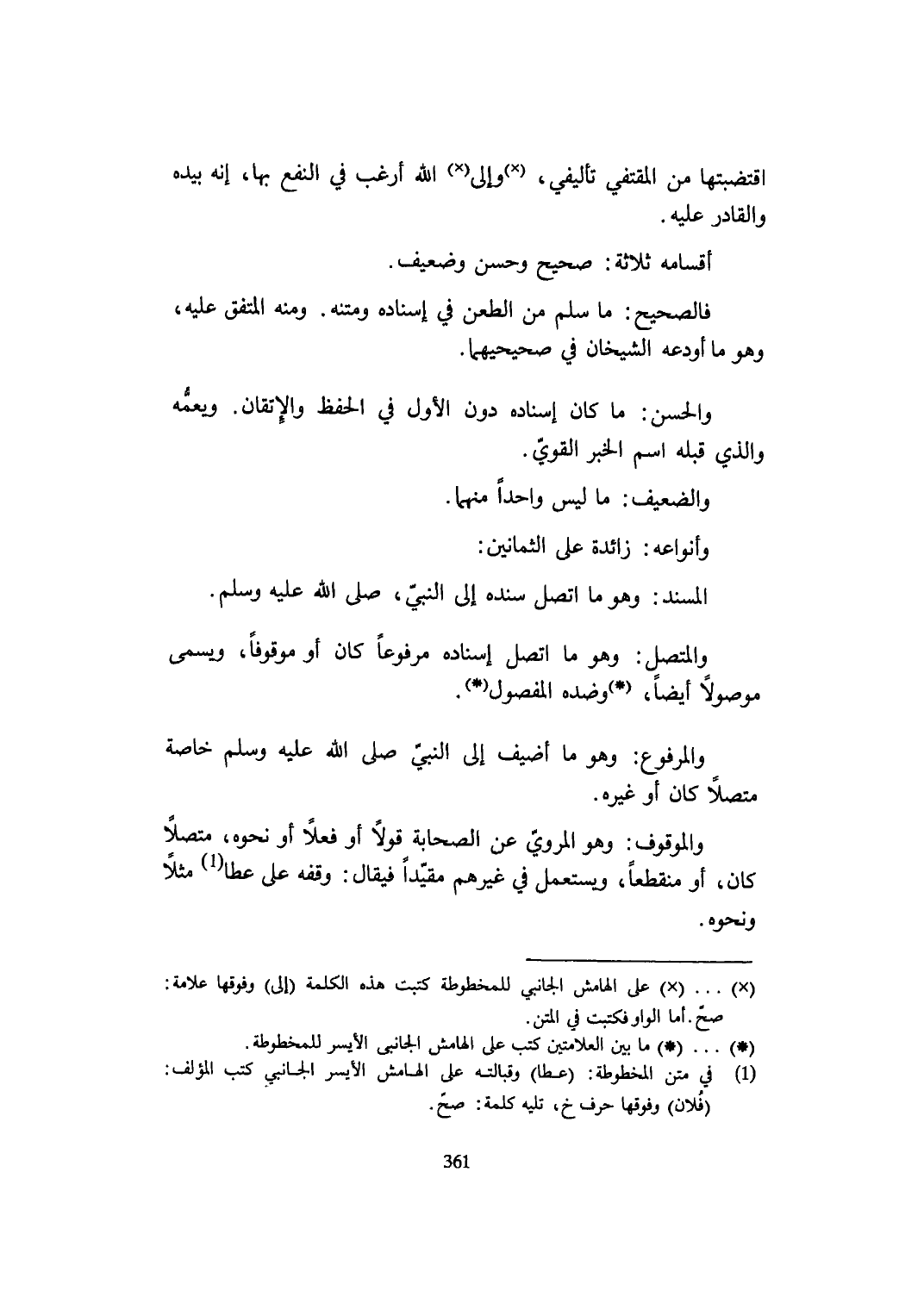 أقسامه ثَلَاثَة صَحِيح وَحسن وَضَعِيف