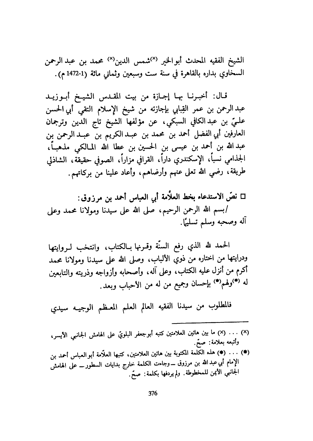 نَص الاستدعاء بِخَط الْعَلامَة أبي الْعَبَّاس أَحْمد بن مَرْزُوق