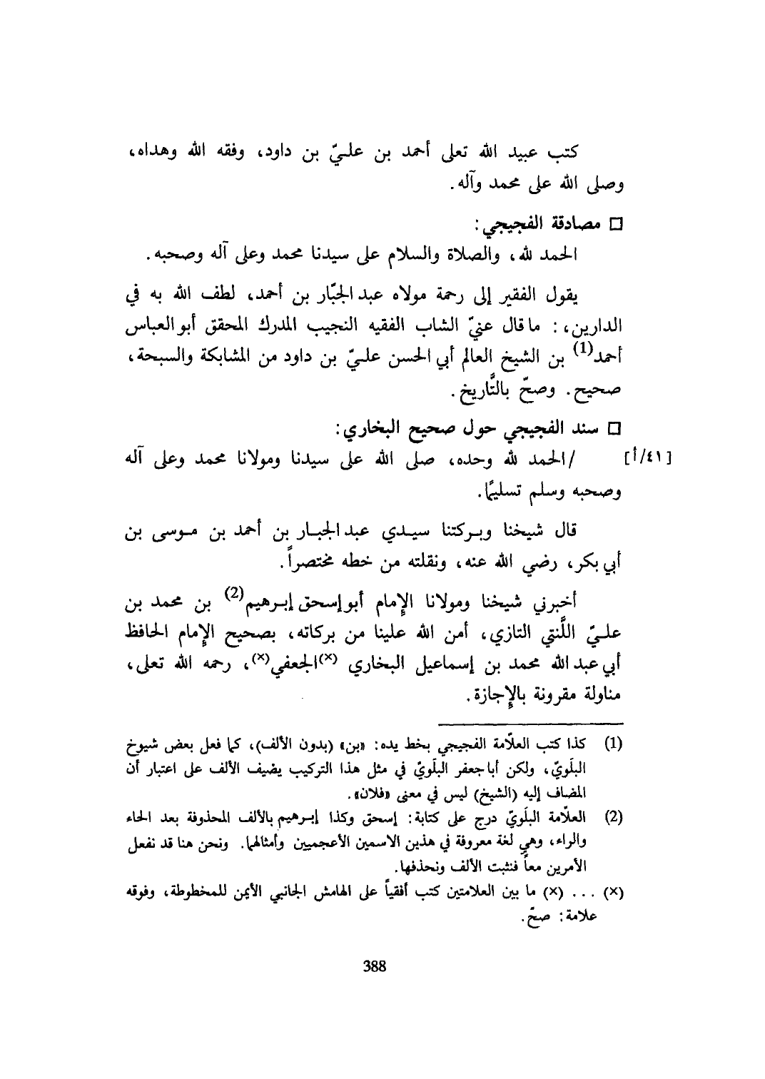 سَنَد الفجيجي حول صَحِيح البُخَارِيّ