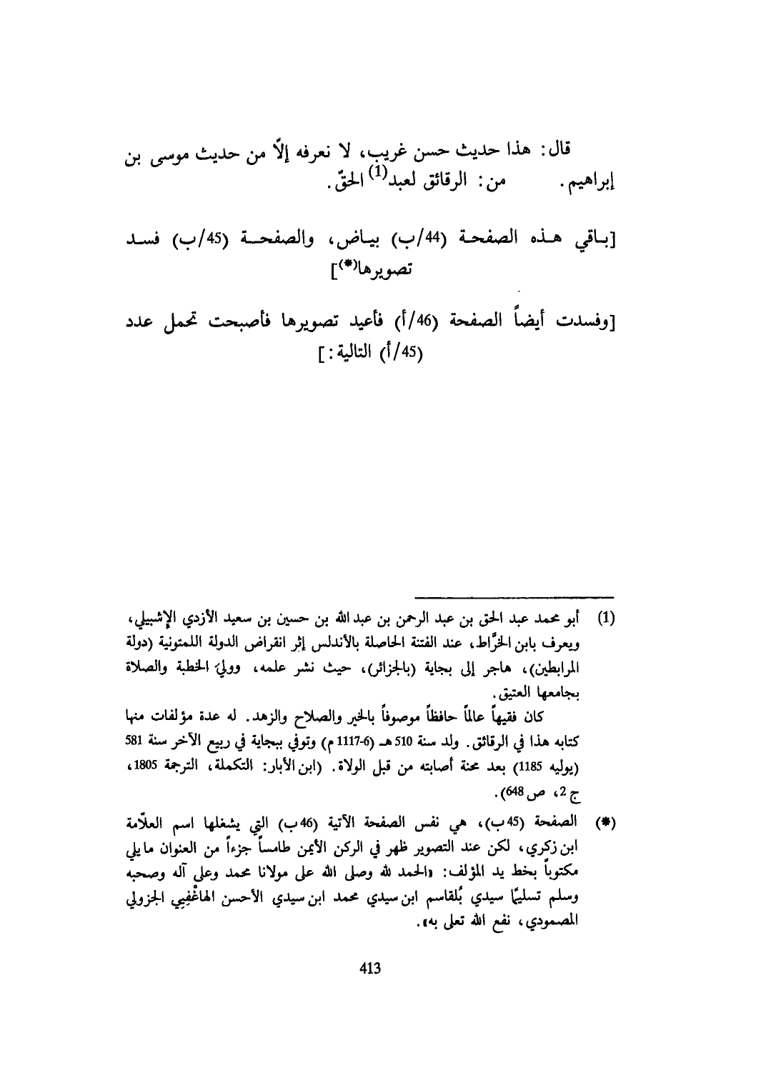 بَاقِي هَذِه الصفحة 44 / ب بَيَاض والصفحة 45 / ب فسد تصويرها