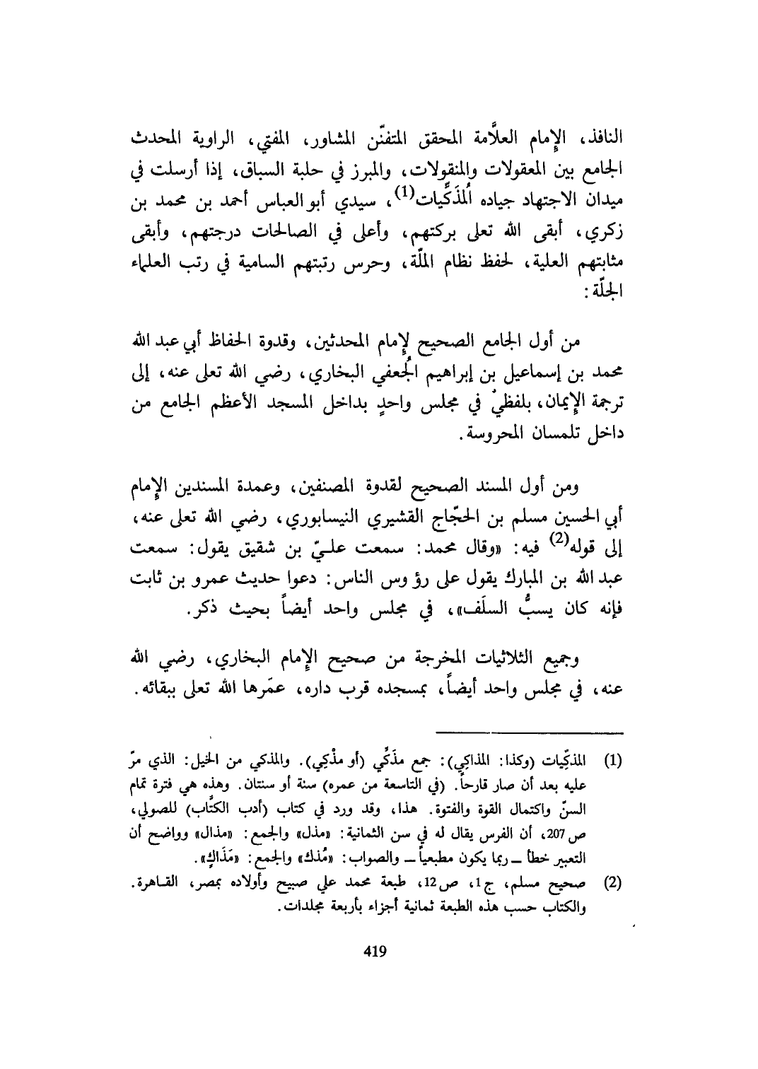 وَمن أول الْمسند الصَّحِيح لقدوة المصنفين وعمدة المسندين الإِمَام أبي الْحُسَيْن مُسلم بن الْحجَّاج الْقشيرِي النَّيْسَابُورِي رَضِي الله تعلى عَنهُ إِلَى قَوْله فِيهِ وَقَالَ مُحَمَّد سَمِعت عَليّ بن شَقِيق يَقُول سَمِعت عبد الله بن الْمُبَارك يَقُول على رُؤُوس النَّاس دعوا حَدِيث عَمْرو بن ثَابت فَإِنَّهُ كَانَ يسب السّلف فِي مجْلِس وَاحِد أَيْضا بِحَيْثُ ذكر