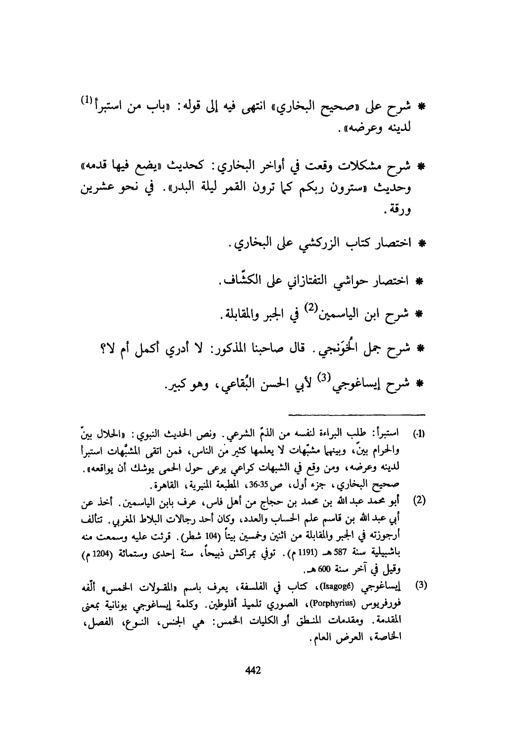 شرح إيساغوجي لأبي الْحسن البقاعي وَهُوَ كَبِير