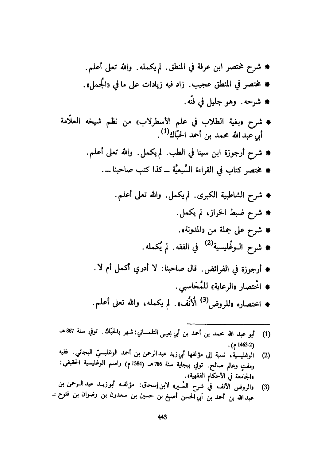 شرح الوغليسية فِي الْفِقْه لم يكمله