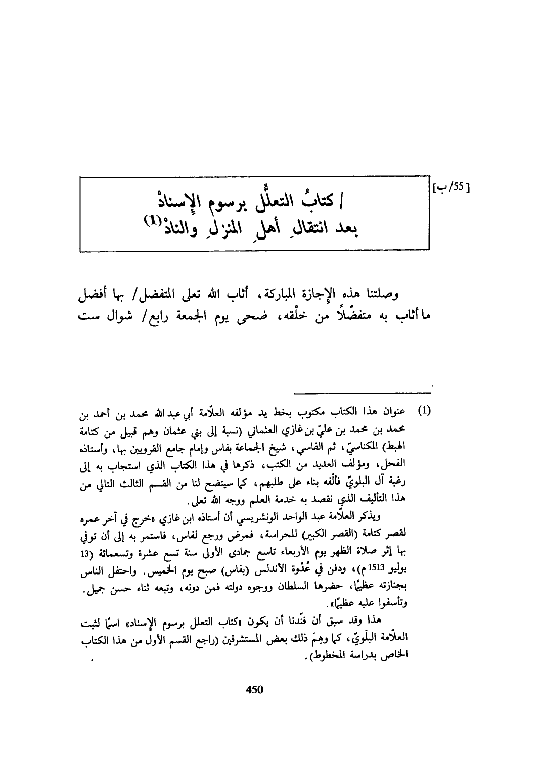 كتاب التعلل برسوم الْإِسْنَاد بعد انقتال أهل الْمنزل والناد
