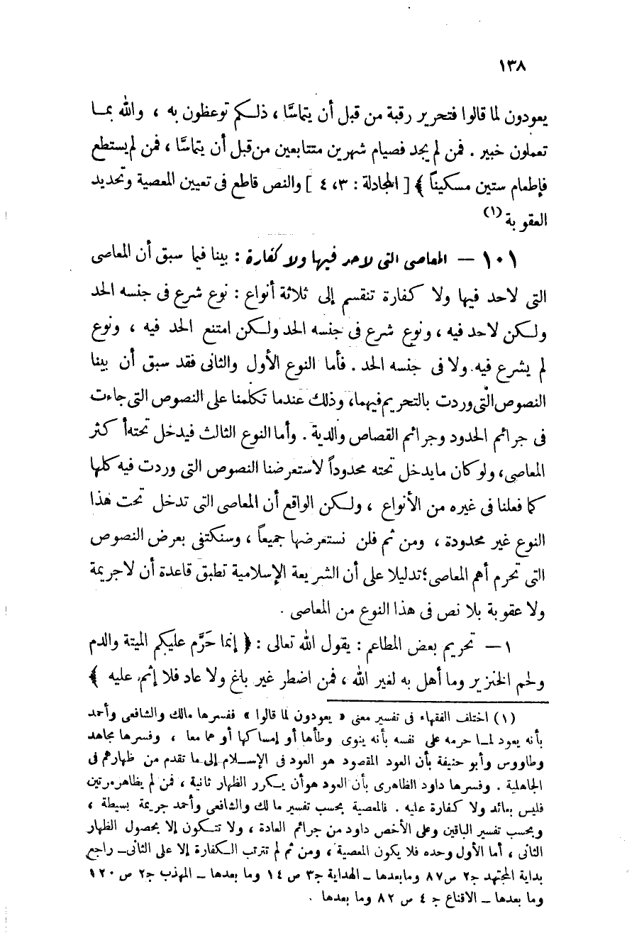 يَعُودُونَ لِمَا قَالُوا فَتَحْرِيرُ رَقَبَةٍ مِّن قَبْلِ أَن يَتَمَاسَّا ذَلِكُمْ تُوعَظُونَ بِهِ وَاللَّهُ بِمَا تَعْمَلُونَ خَبِيرٌ* فَمَن لَّمْ يَجِدْ فَصِيَامُ شَهْرَيْنِ مُتَتَابِعَيْنِ مِن قَبْلِ أَن يَتَمَاسَّا فَمَن لَّمْ يَسْتَطِعْ فَإِطْعَامُ سِتِّينَ مِسْكِينًا} [المجادلة: 3، 4] ، والنص قاطع في تعيين المعصية وتحديد العقوبة (¬1) .