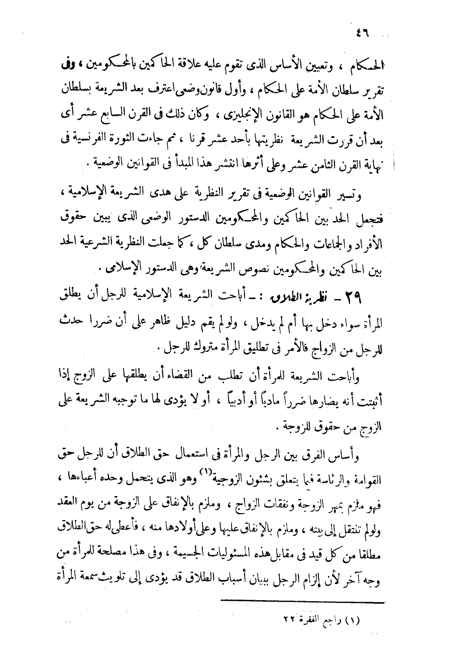 29 - نظرية الطلاق: أباحت الشريعة الإسلامية للرجل أن يطلق المرأة سواء دخل بها أم لم يدخل، ولو لم يقم دليل ظاهر على أن ضرراً حدث للرجل من الزواج، بالأمر في تطليق المرأة متروك للرجل.