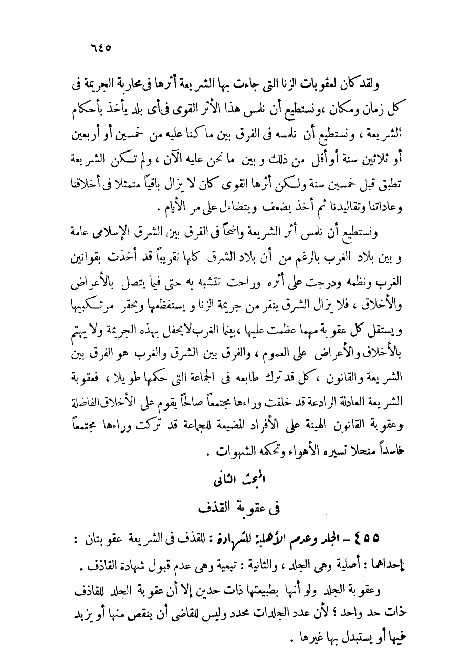 455 - الجلد وعدم الأهلية للشهادة: للقذف في الشريعة عقوبتان: إحداهما: أصلية وهي الجلد، والثانية: تبعية وهي عدم قبول شهادة القاذف.