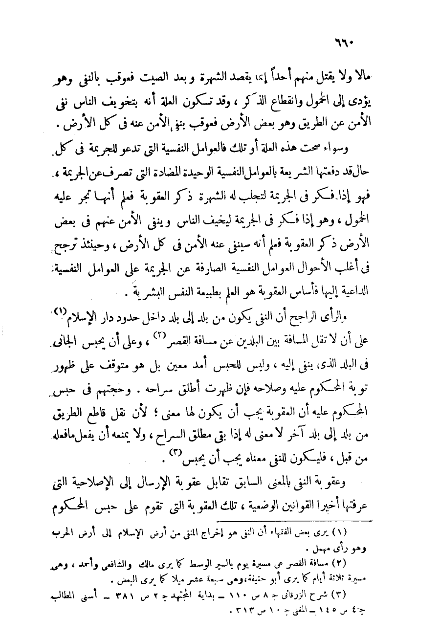(¬1) يرى بعض الفقهاء أن النفي هو إخراج المنفي من أرض الإسلام إلى أرض الحرب، وهو رأي مهمل.