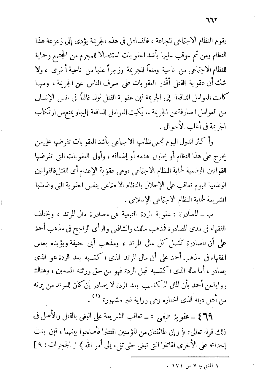 469 - عقوبة البغي: تعاقب الشريعة على البغي بالقتل، والأصل في ذلك قوله تعالى: {وَإِن طَائِفَتَانِ مِنَ الْمُؤْمِنِينَ اقْتَتَلُوا فَأَصْلِحُوا بَيْنَهُمَا فَإِن بَغَتْ إِحْدَاهُمَا عَلَى الأُخْرَى فَقَاتِلُوا الَّتِي تَبْغِي حَتَّى تَفِيءَ إِلَى أَمْرِ اللَّهِ} [الحجرات: 9] ،