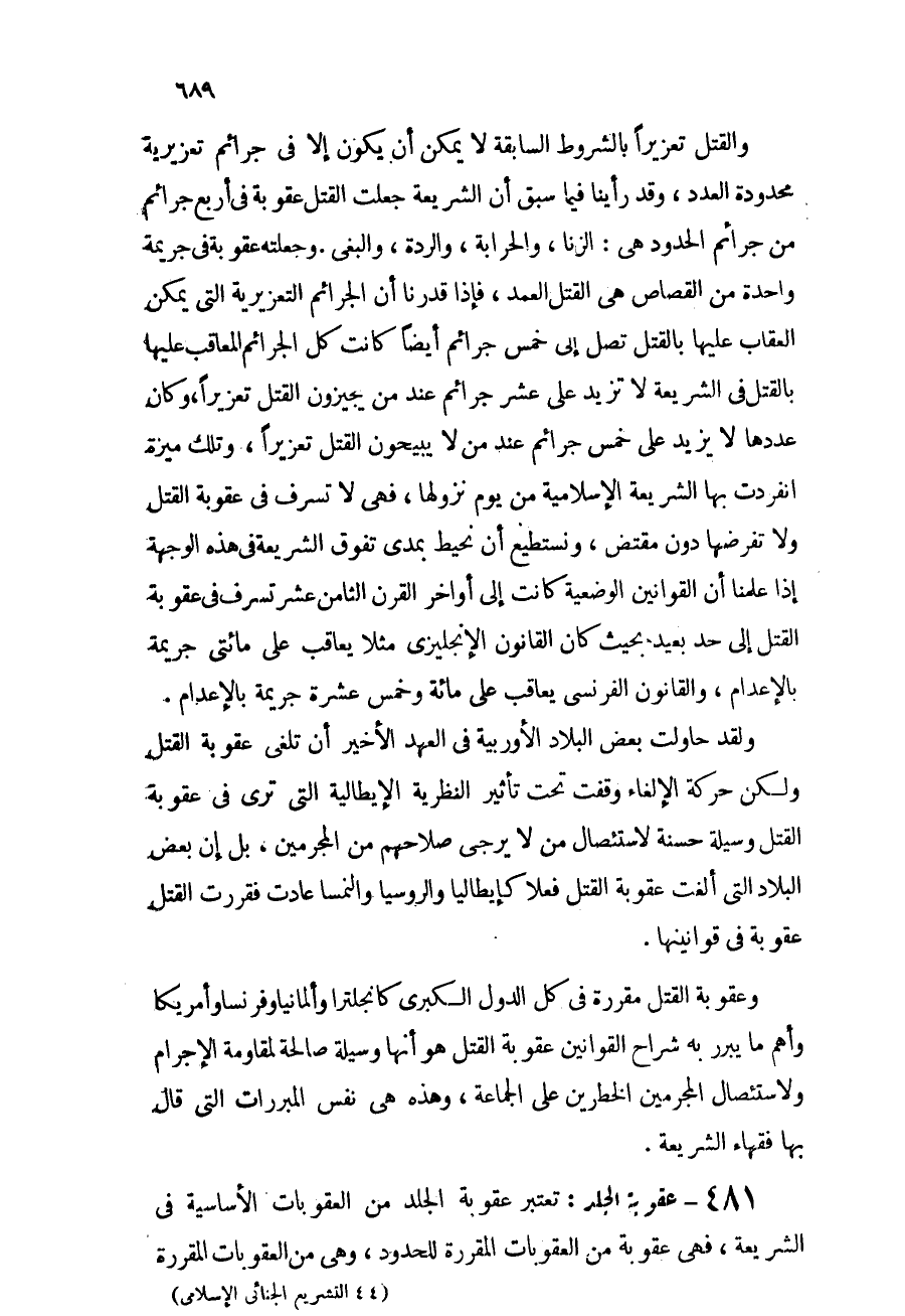 481 - عقوبة الجلد: تعتبر عقوبة الجلد من العقوبات الأساسية في الشريعة، فهي عقوبة من العقوبات المقررة للحدود، وهي من العقوبات المقررة