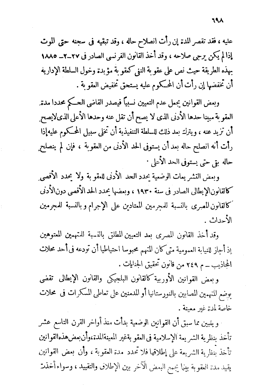 عليه, فقد تقصر المدة إن رأت إنصلاح حاله, وقد تبقيه في سجنه حتى الموت إذا لم يكن يرجى صلاحه, وقد أخذ القانون الفرنسي الصادر في 27/2/1885 بهذه الطريقة حيث نص على عقوبة النفي كعقوبة مؤبدة وخول السلطة الإدارية أن تخفضها إن رأت أن المحكوم عليه يستحق تخفيض العقوبة.
