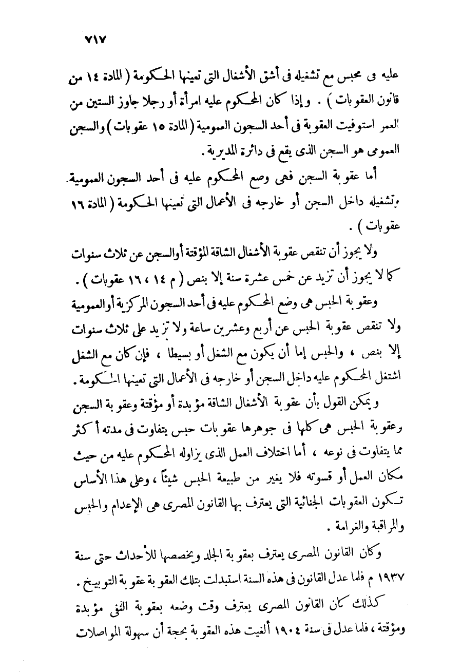 كذلك كان القانون المصري يعترف وقت وضعه بعقوبة النفي مؤبدة أو مؤقتة, فلما عدل سنة 1904 ألغيت هذه العقوبة بحجة أن سهولة المواصلات