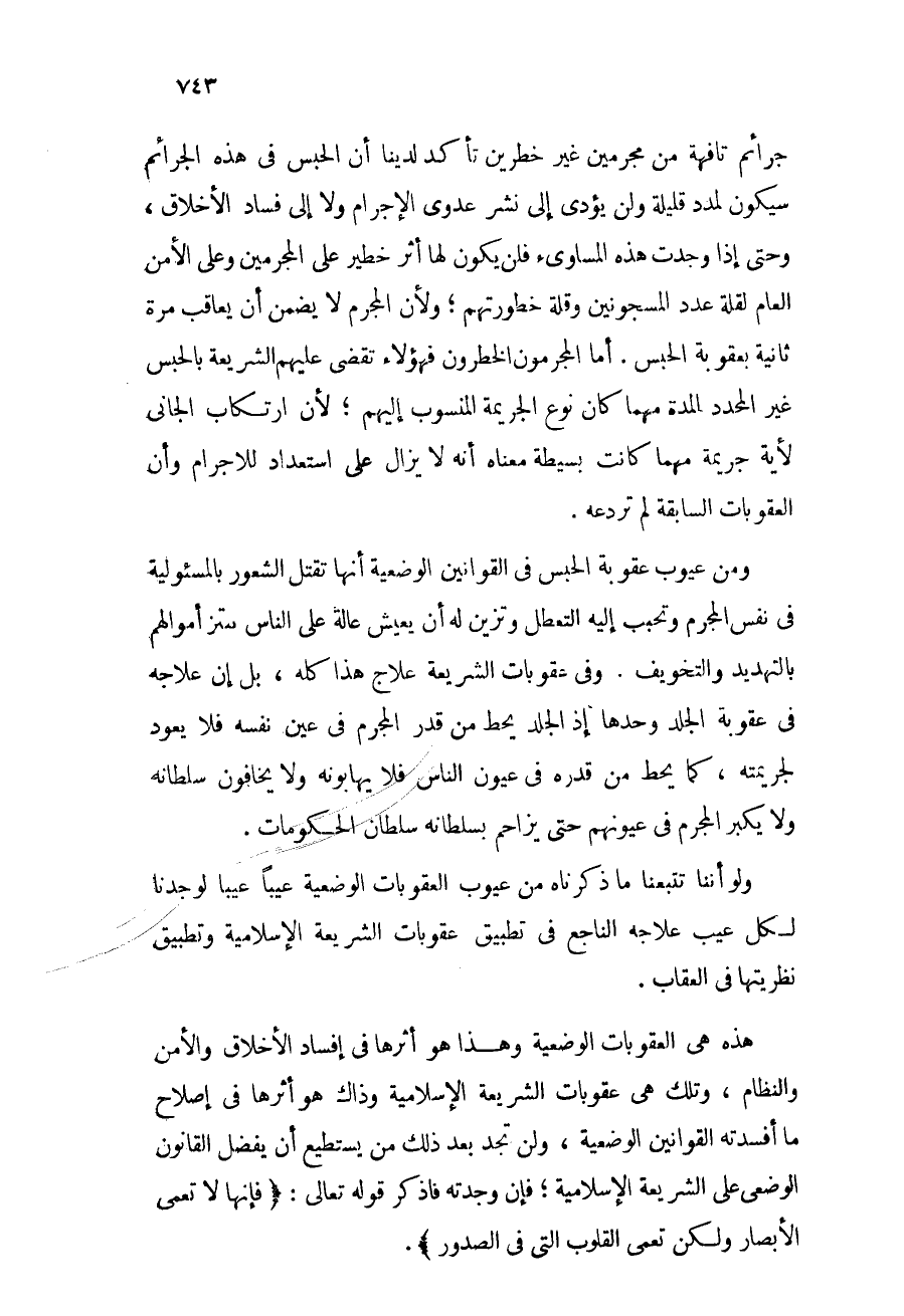 هذه هي العقوبات الوضعية, وهذا هو أثرها في إفساد الأخلاق والأمن والنظام, وتلك هي عقوبات الشريعة الإسلامية, وذاك هو أثرها في إصلاح ما أفسدته القوانين الوضعية, ولن نجد بعد ذلك من يستطيع أن يفضل القانون الوضعي على الشريعة الإسلامية؛ فإن وجدته فاذكر قوله تعالى: {فَإِنَّهَا لا تَعْمَى الأَبْصَارُ وَلَكِن تَعْمَى الْقُلُوبُ الَّتِي فِي الصُّدُورِ} [الحج: 46] .