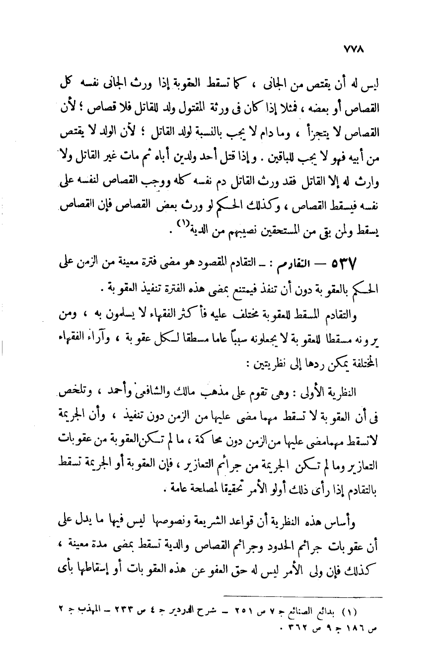 537 - التقادم: التقادم المقصود هو مضي فترة معينة من الزمن على الحكم بالعقوبة دون أن تنفذ فيمتنع بمضي هذه الفترة تنفيذ العقوبة.
